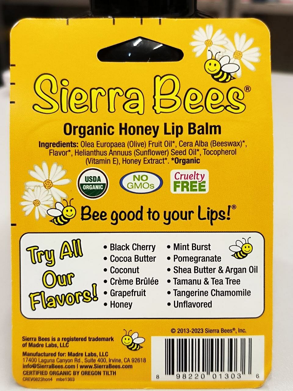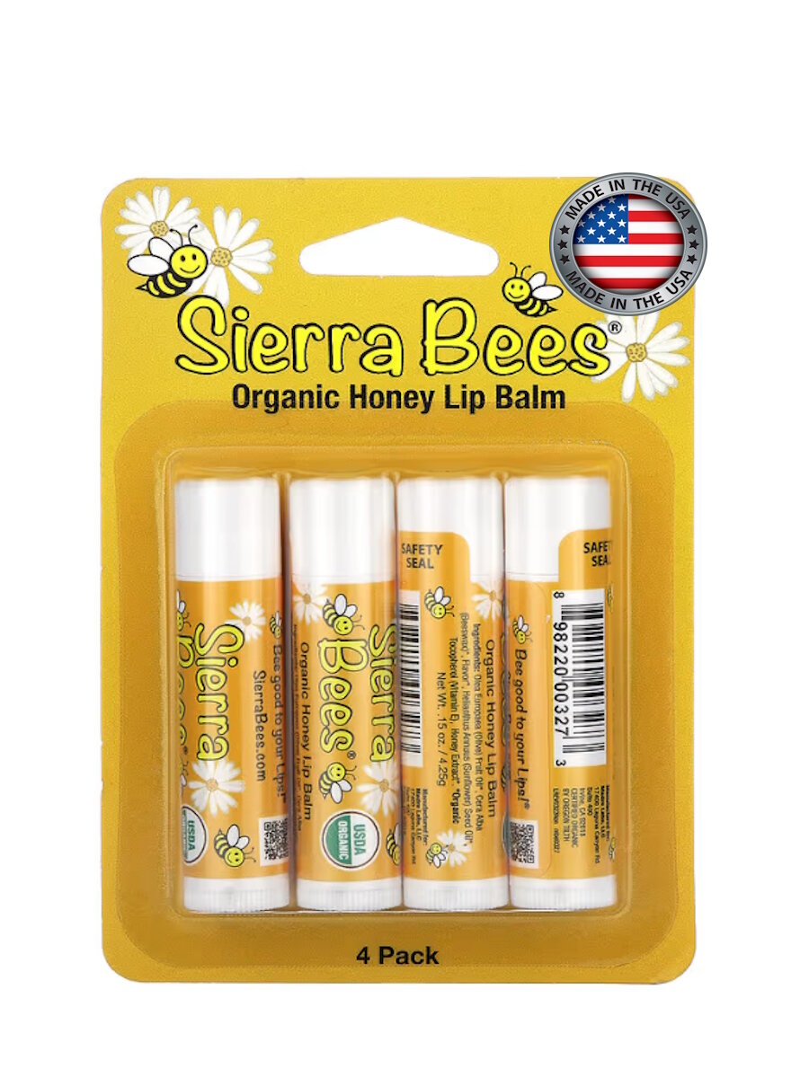 Sierra Bees, Органические бальзамы для губ, мед, 4 штуки в упаковке весом (4,25 г) каждая информация: