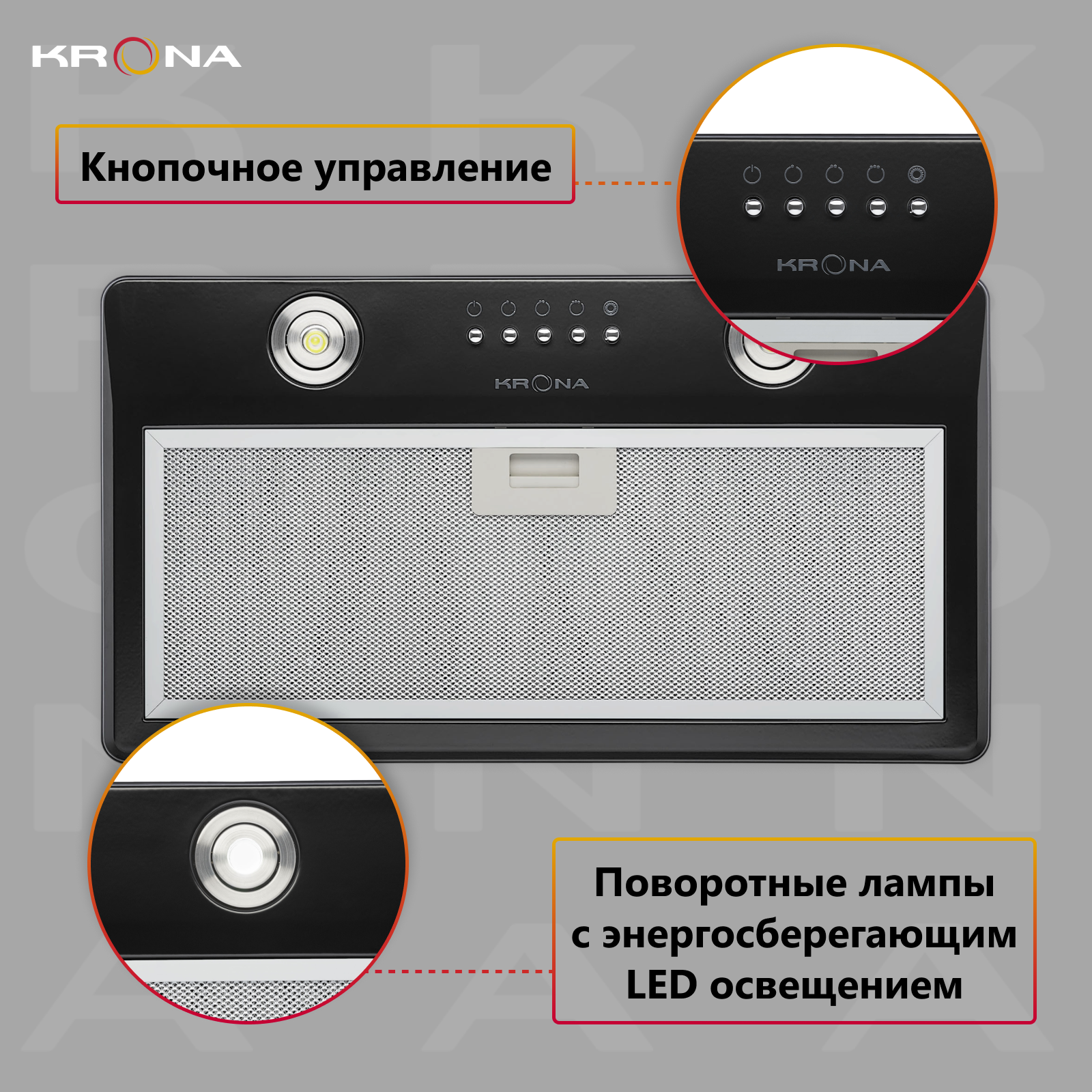 Кухонная вытяжка встраиваемая KRONA RUNA 600 black PB 9 555 ₽