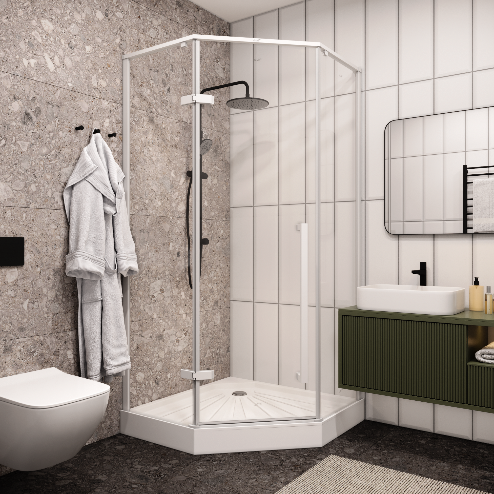 Душевой уголок Ceruttispa C3AW (90x90x195), без поддона, профиль белый, стекло прозрачное