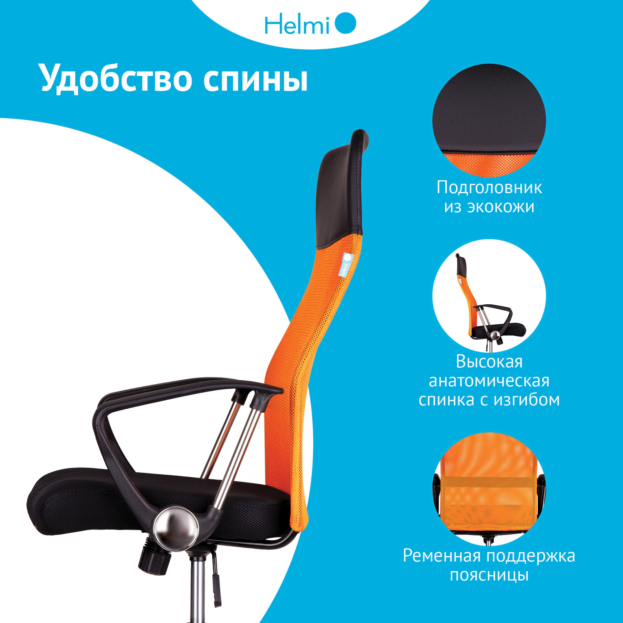 10 цен на Компьютерное, офисное, удобное кресло (стул) для руководителя с подлокотниками Helmi HL-E16 "Content", ткань/сетка/экокожа черная/оранжевая, хром