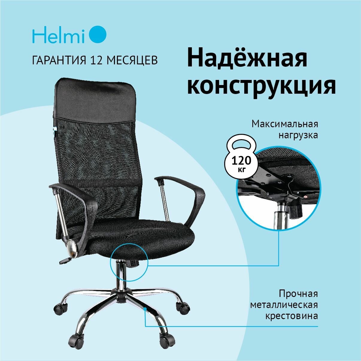 Кресло руководителя Helmi HL-E16 «Content», ткань/сетка/экокожа черная, хром 8 368 ₽