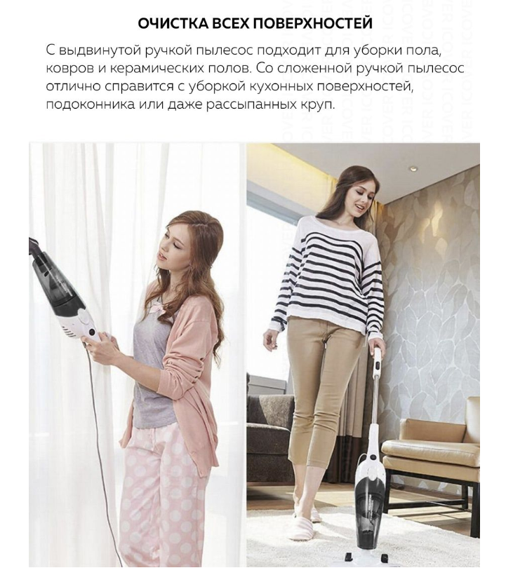 Пылесос вертикальный ручной для дома Deerma Dx118c, 2 в 1, потребляемая мощность 600 Вт, контейнер 1,2 л, белый, 456252 информация:
