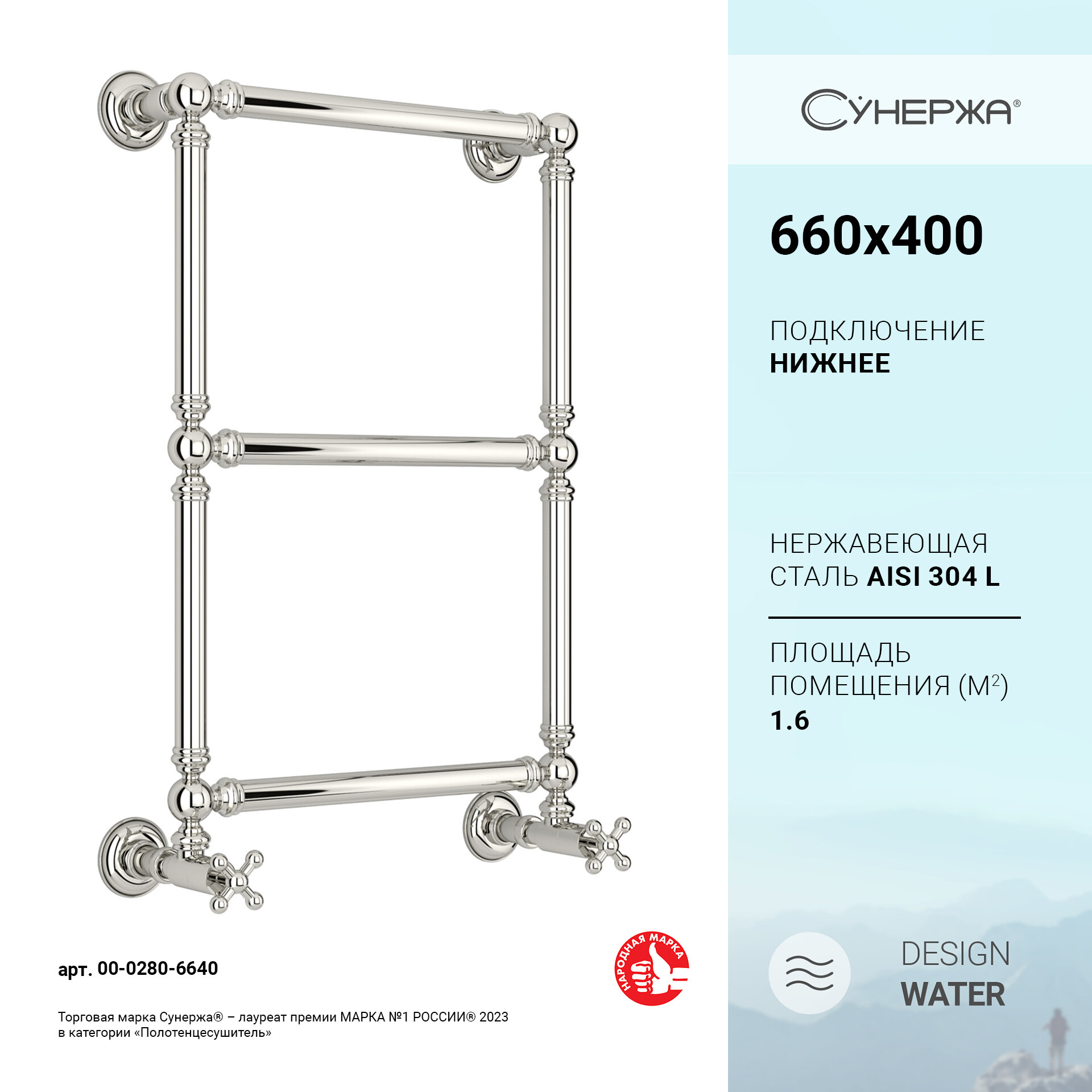 Водяной полотенцесушитель Сунержа Ренессанс 1304 660x400 арт. 00-0280-6640