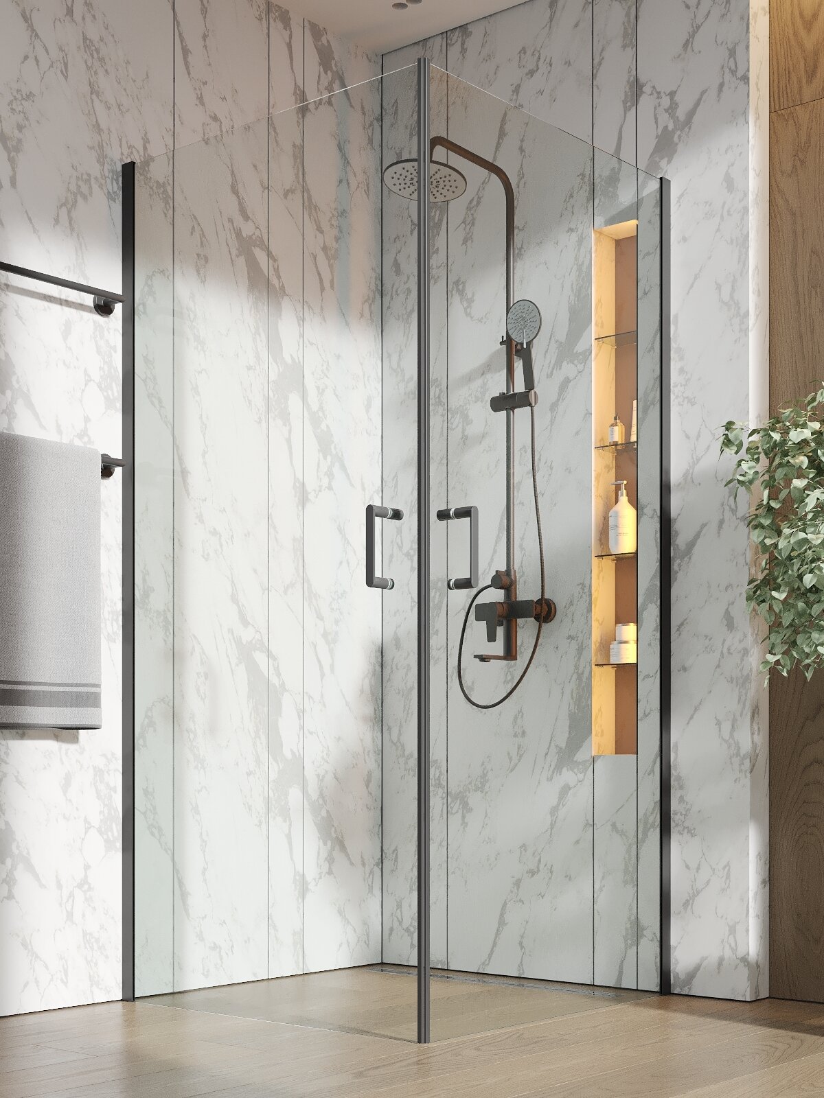 Orange E04-090tb душевой уголок из распашных универсальных дверей, черный