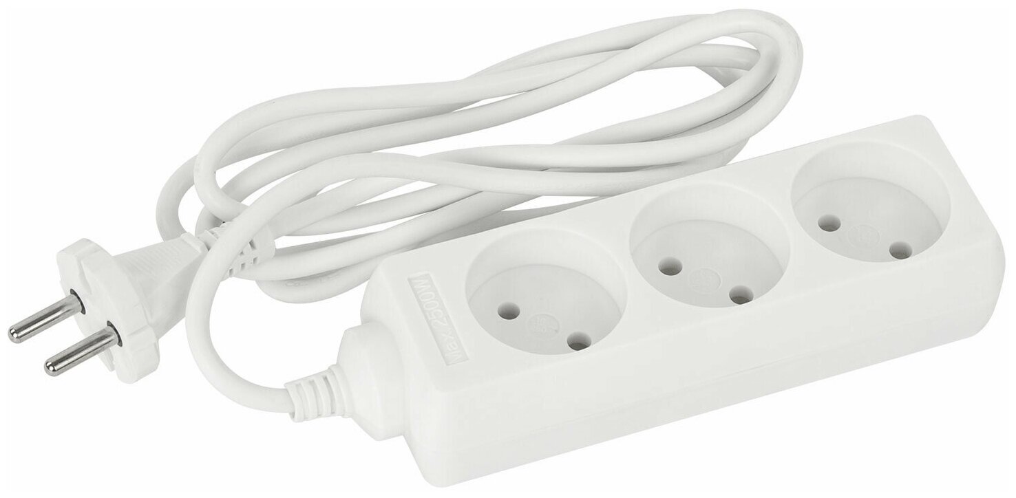 Удлинитель сетевой SONNEN U-131, 3 розетки, без заземления, 6 А, 1,8 м, белый, 511428 В комплекте: 1шт.