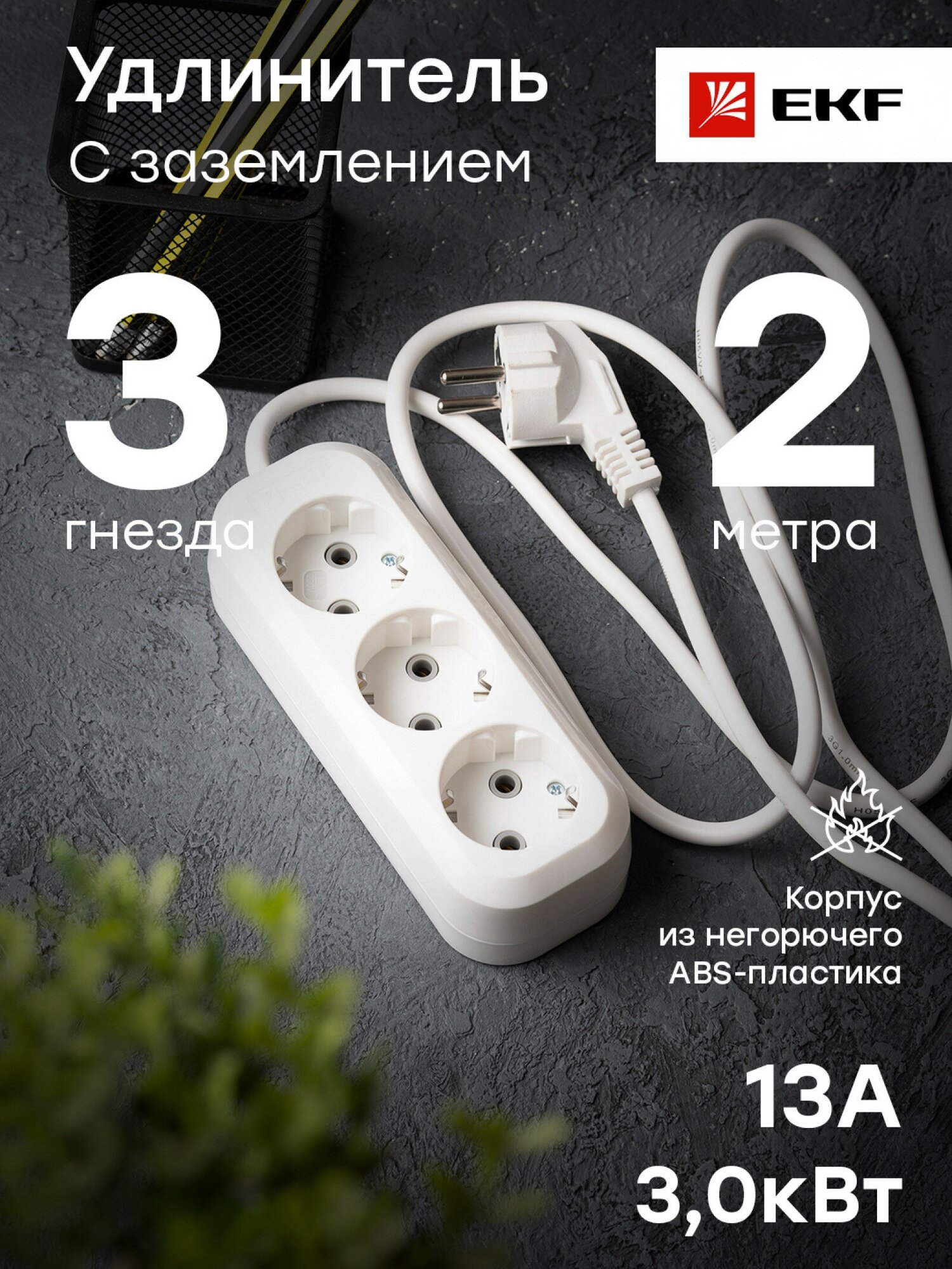 Отзывы на Удлинитель "Эксперт" 3 гнезда 2 метра 16А/3,5кВт с заземлением ПВС 3х1 EKF
