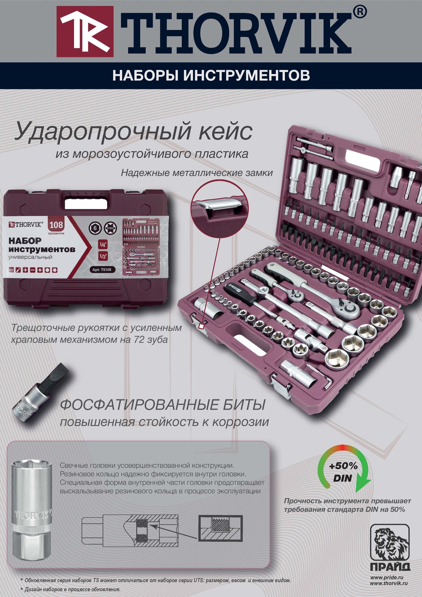 Набор инструмента 1/4", 1/2"DR, 56 предметов Thorvik TS056, 54002 информация: