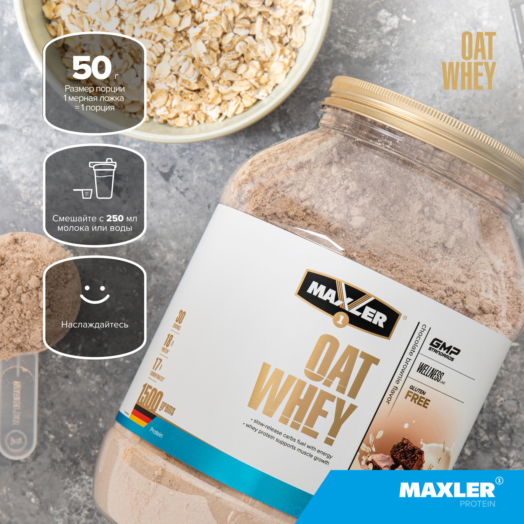 Протеин Oat Whey 900 гр (Maxler) Шоколадное пирожное информация: