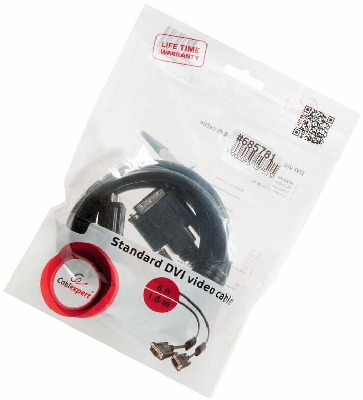 Кабель телекоммуникационный DVI-D single link Cablexpert CC-DVI-BK-6, 19M/19M, 1.8м, черный, экран, феррит.кольца, пакет, CC-DVI-BK-6