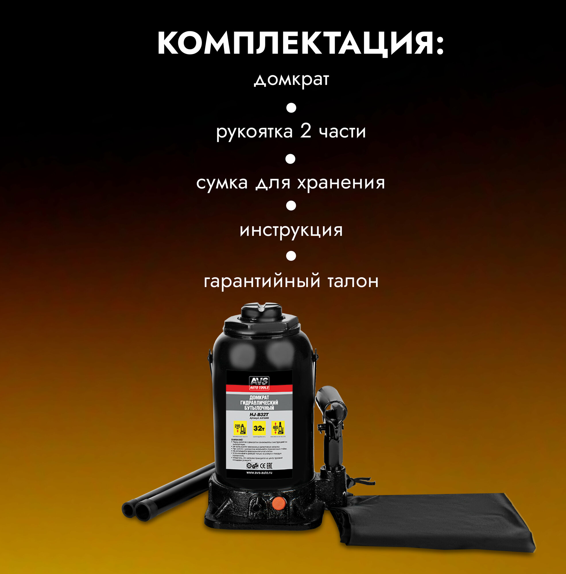Домкрат автомобильный Бутылочный Гидравлический AVS 32т информация: