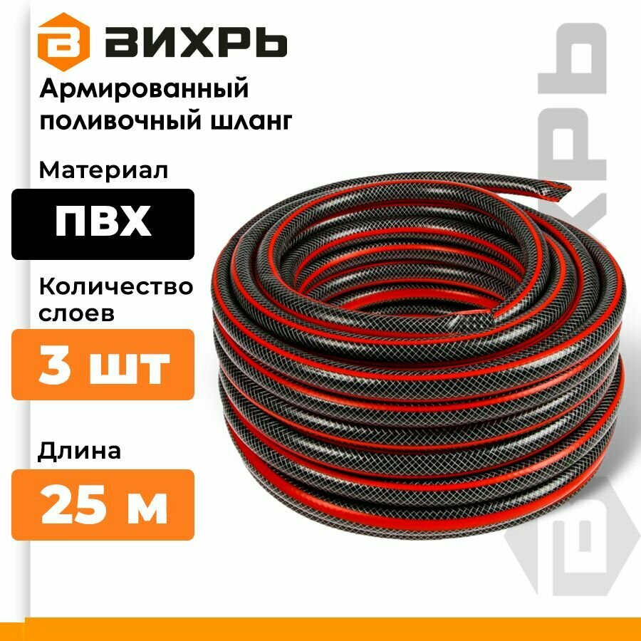 Шланг поливочный Вихрь ПВХ усиленный премиум, пищевой трехслойный армированный 1/2, 25м, 73/7/2/10 информация: