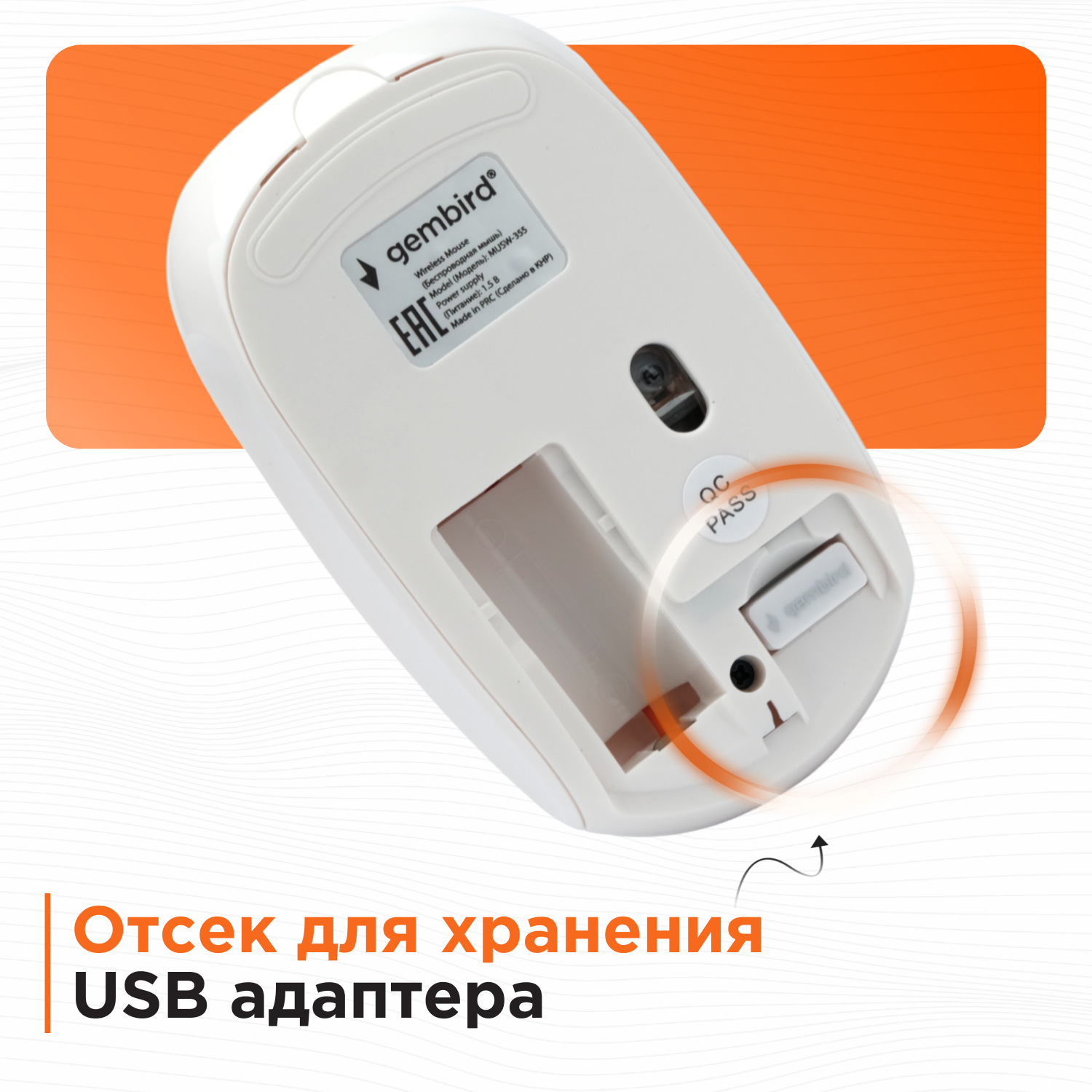 Беспроводная бесшумная мышь Gembird белая soft touch 1600DPI 2,4ГГц MUSW-355-W информация: