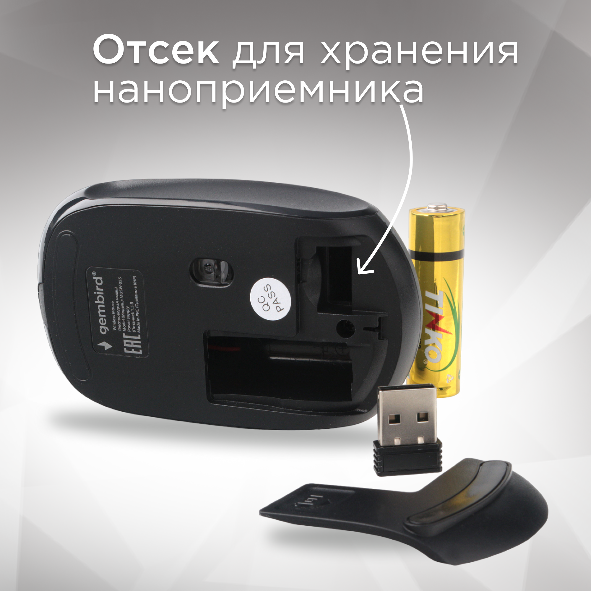 Мышь GEMBIRD беспроводная MUSW-355-Gr серый 2 4ГГц 1 090 ₽