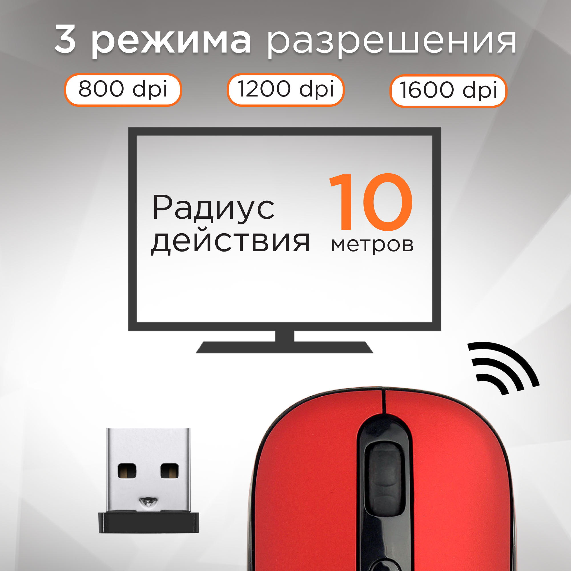 Беспроводная бесшумная мышь Gembird красная soft touch 1600DPI 2,4ГГц MUSW-355-R информация: