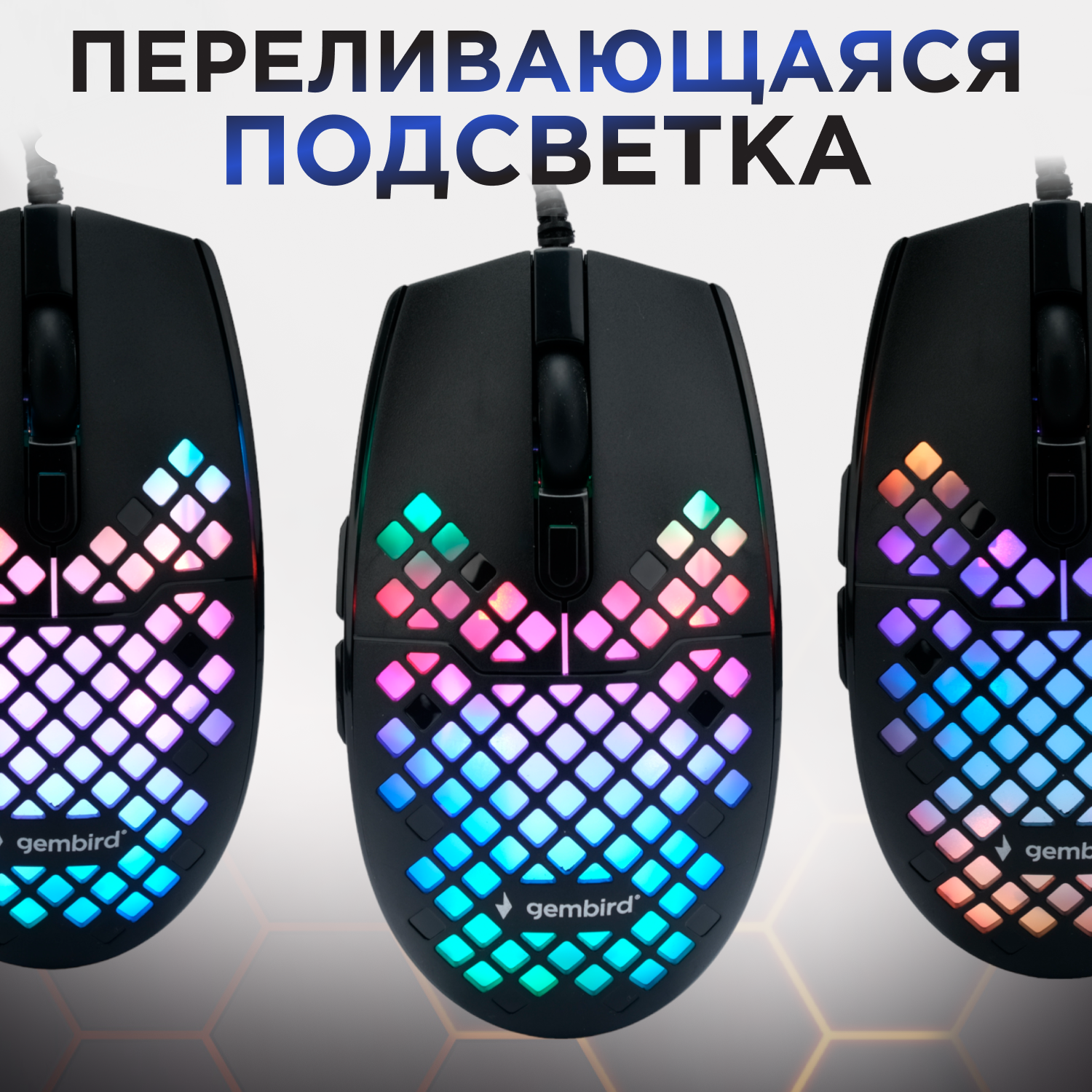 Мышь Gembird MG-760, игровая, USB, 3200dpi, 5+1кн., подсветка, кабель тканевый 1.8 м
