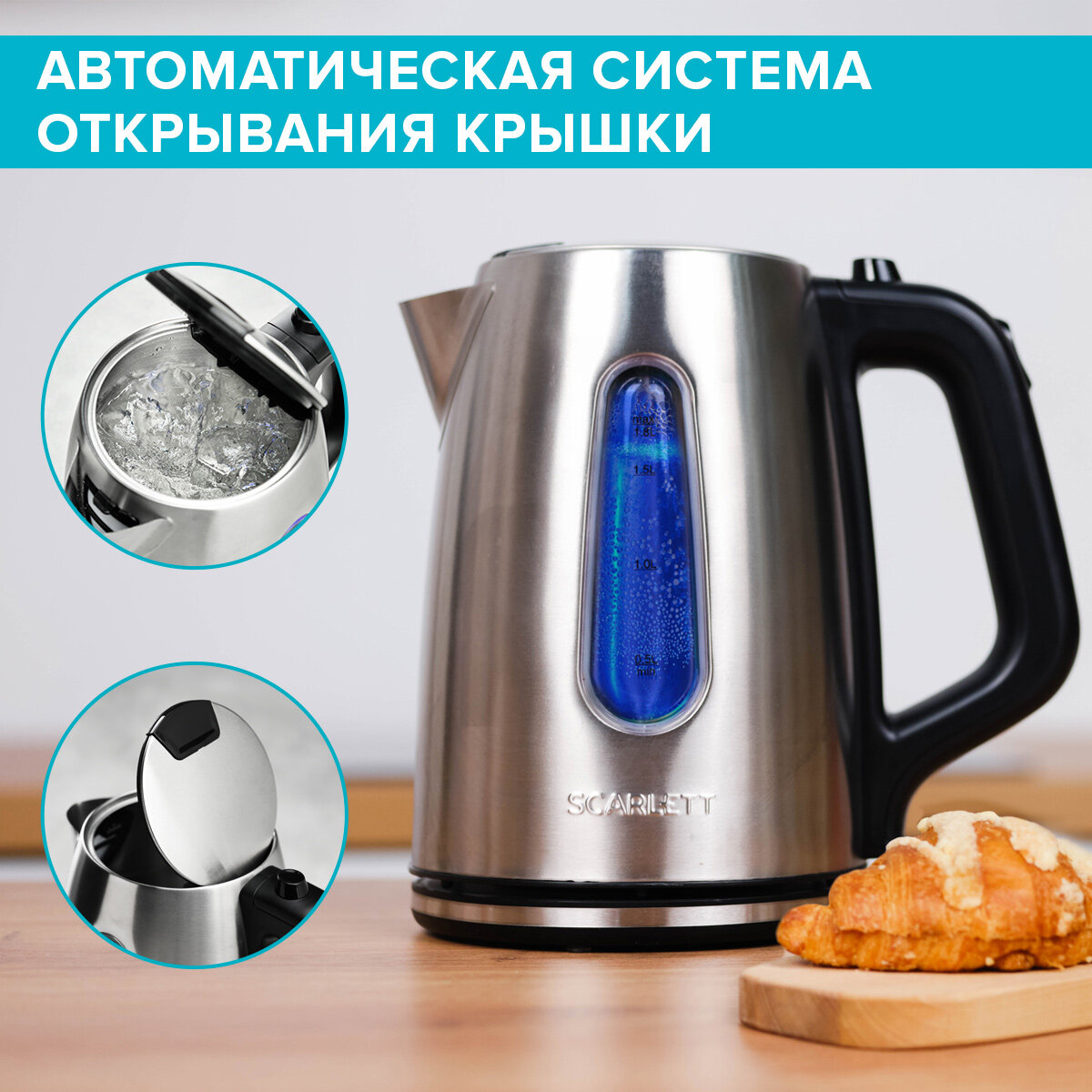 Отзывы на Чайник SCARLETT SC-EK21S101, 1,8 л, 2200 Вт, металлический корпус подсветка