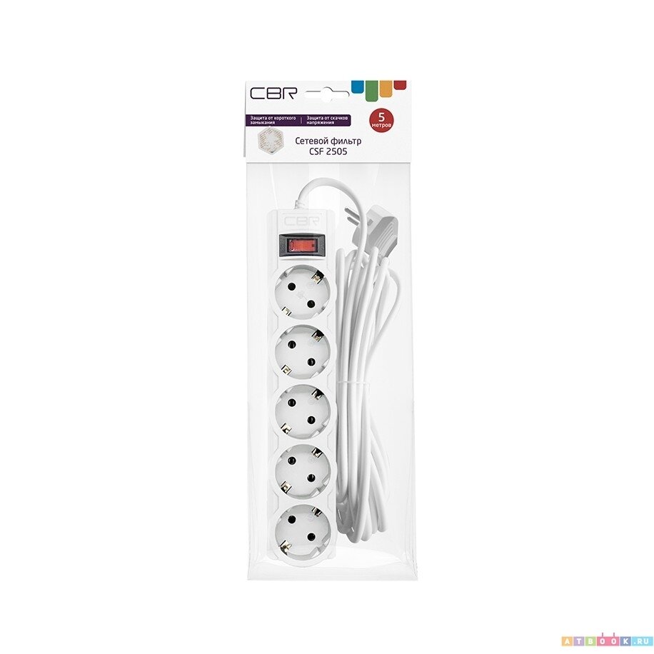 Cbr сбр сетевые фильтры Сетевой фильтр CSF 2505-5.0 White PC, 5 евророзеток, длина кабеля 5 метров, цвет белый пакет