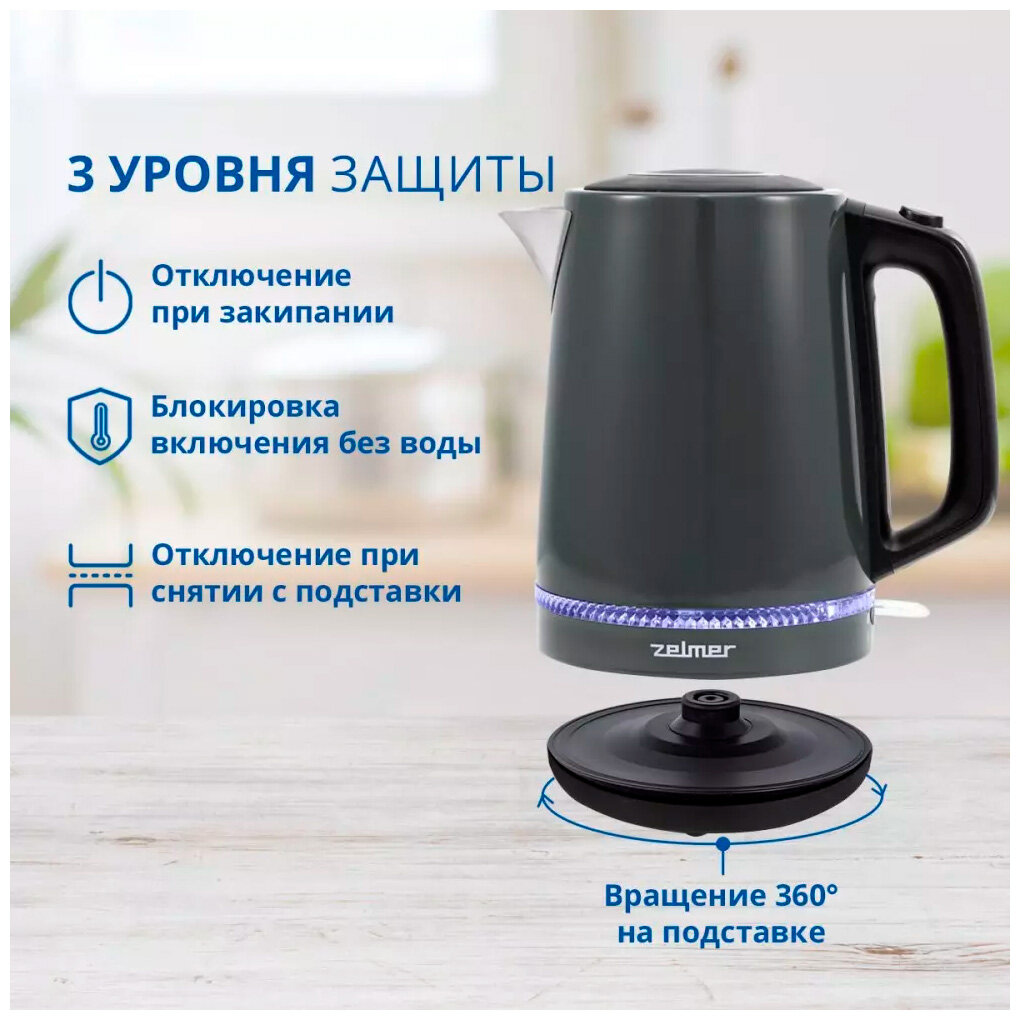 Zelmer Чайник Zelmer ZCK7921G GRAY, электрический, серый (2200Вт, 1.7л) (ret) 5 252 ₽