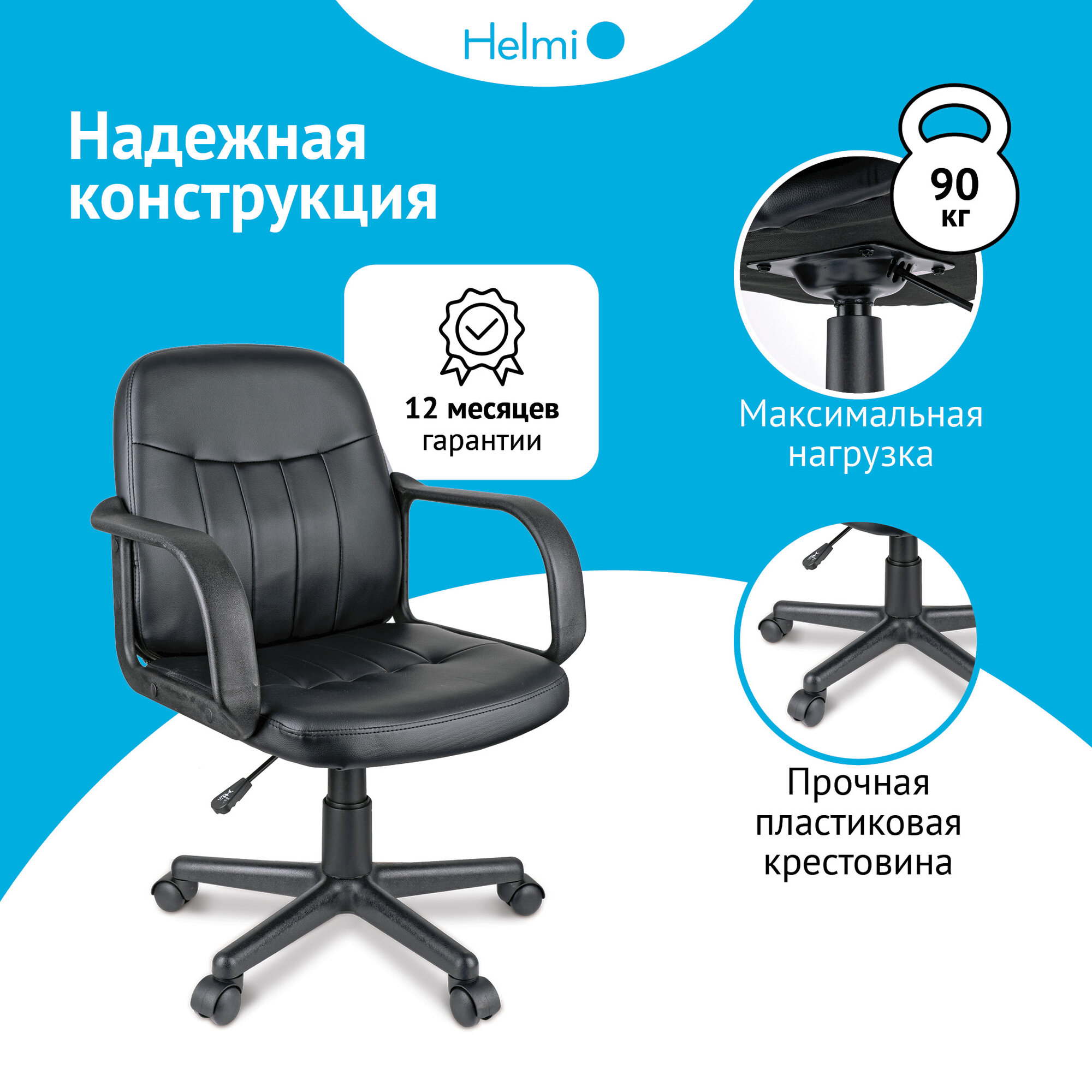 Отзывы на Компьютерное кресло Helmi HL-M01 "Brief"/Сиденье и спинка из черной экокожи, с подлокотниками, на колесиках, с регулировкой по высоте /Офисный компьютерный стул, мебель для дома