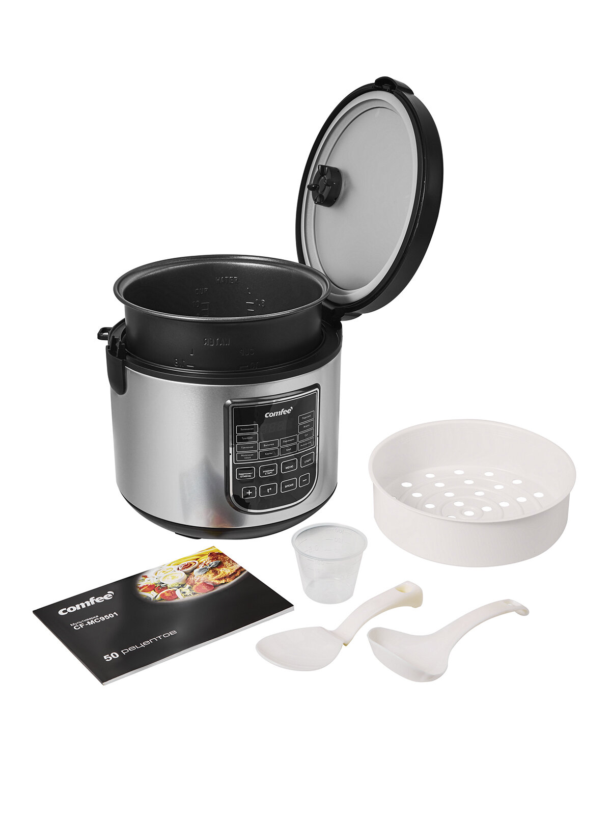 10 цен на Мультиварка Comfee CF-MC9501, 5 л, 650 Вт, 12 автопрограмм, антипригарное покрытие, таймер, поддержание уровня нагрева, серебристый/черный