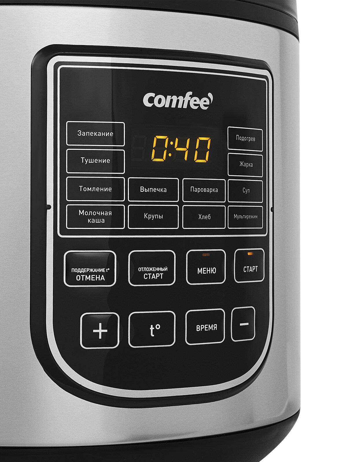 Отзывы на Мультиварка Comfee CF-MC9501, 5 л, 650 Вт, 12 автопрограмм, антипригарное покрытие, таймер, поддержание уровня нагрева, серебристый/черный