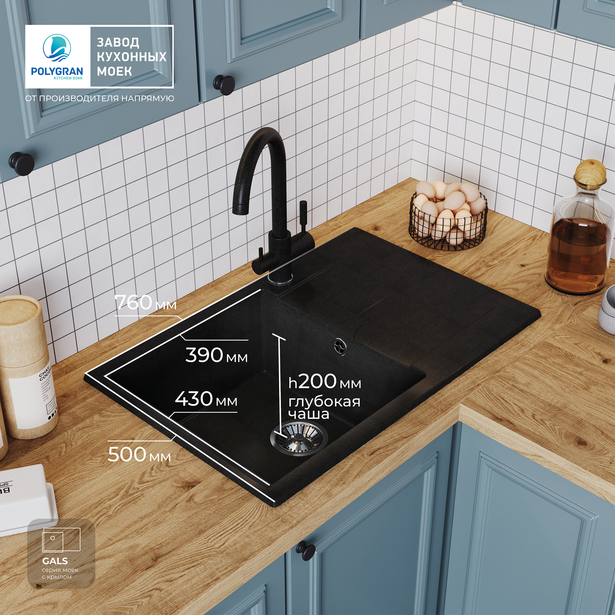 Мойка для кухни POLYGRAN Gals-760 каменная с крылом (№16 Черный)