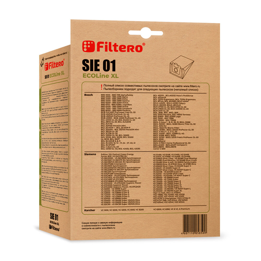 Мешки-пылесборники Filtero SIE 01 ECOLine XL (тип "G ALL"), для пылесосов Bosch, Siemens , бумажные, 10 штук + фильтр информация: