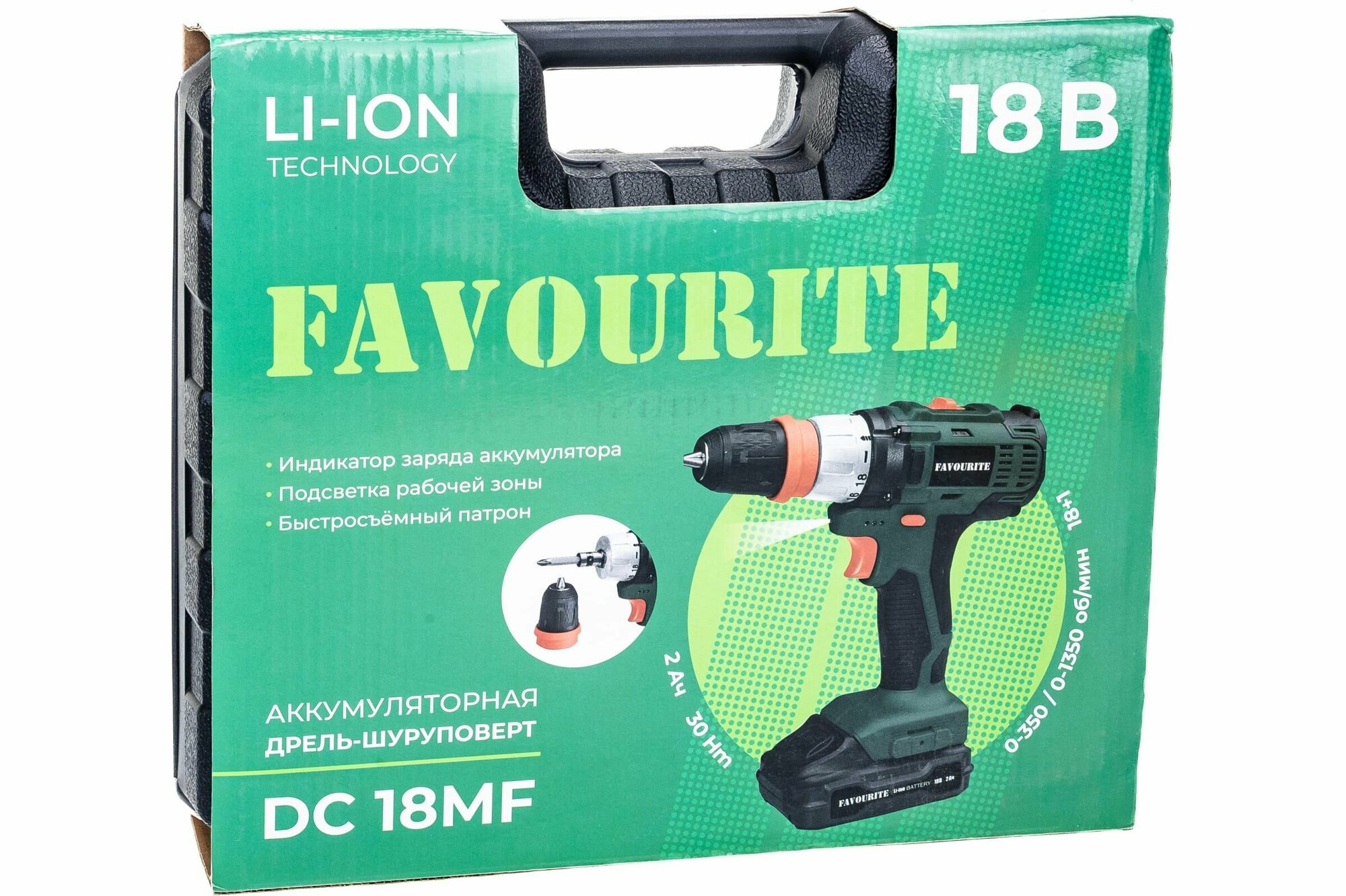 FAVOURITE Акк. дрель-шуруповёрт 18В, 2Ач, 30Нм Li-ion съём.патрон DC 18MF