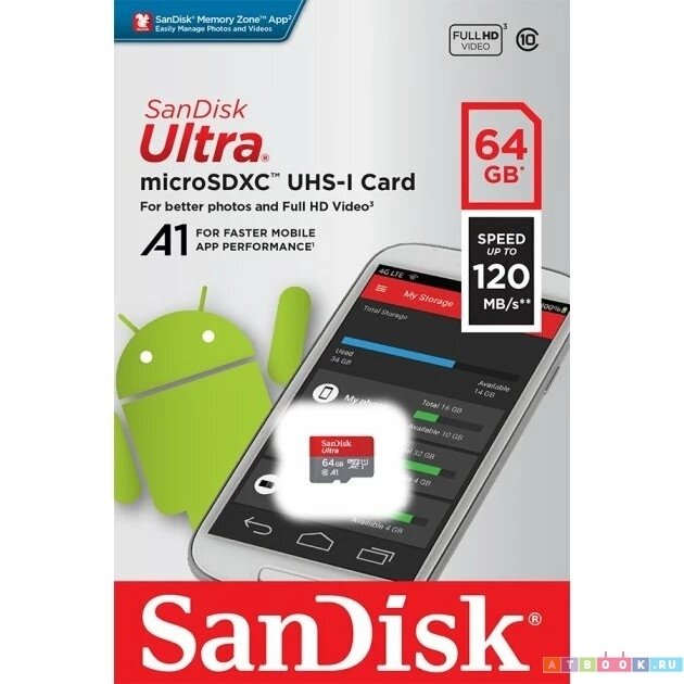 Карта памяти SanDisk microSDXC 64 ГБ Class 10, A1, UHS-I U1, R 120 МБ/с, адаптер на SD, 1 шт. информация:
