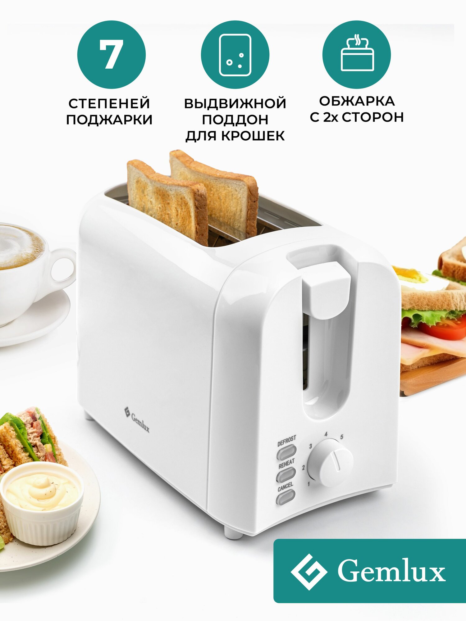 Тостер для хлеба электрический Gemlux GL-T210PW, белый, компактный, электротостер кухонный, бытовая техника для кухни информация: