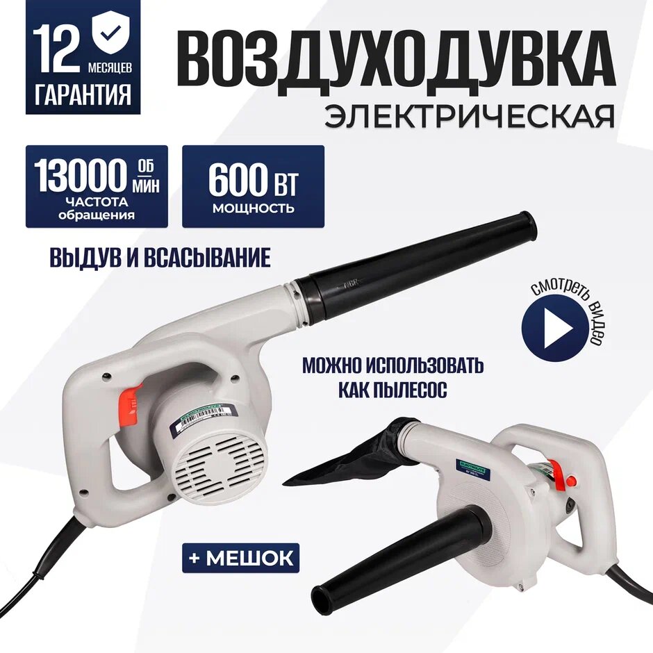 Воздуходувка / Воздуходувка для компьютера / Воздуходувка электрическая / Ветродуйка / Садовый пылесос / Electrolite ВУ-300EL ( Мешок для сбора мусора, ручная, вихревой вентилятор пылесос, 600 Вт, 180 м3/ч) 1 737 ₽