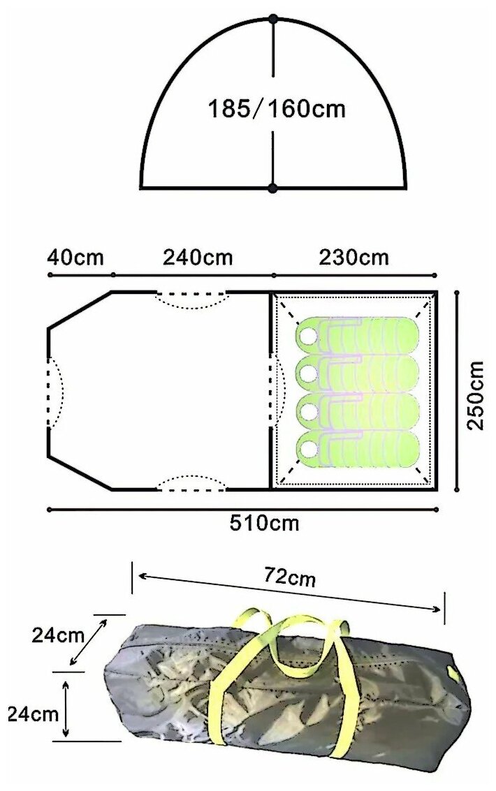 | Высота внешней палатки | 185 см |