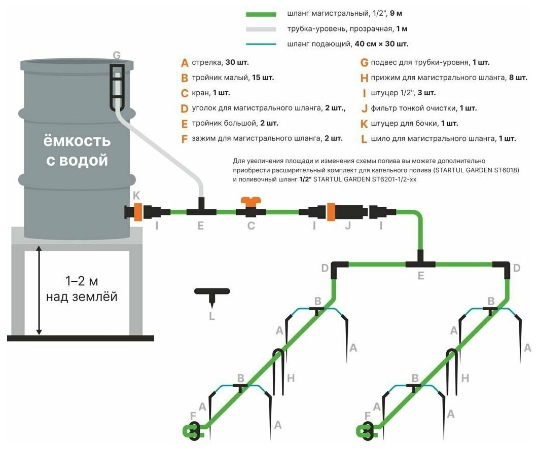 Комплект для капельного полива STARTUL от ёмкости на 30 растений GARDEN (ST6018-30)