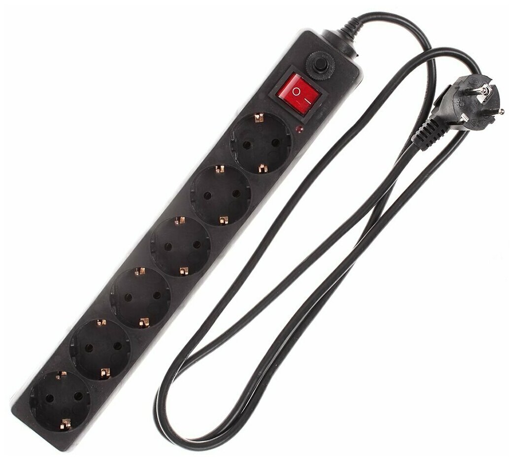 Сетевой фильтр TDM СФ-06В, 6 гнезд, с заземлением и выключатель, ПВС 3x1, 1,5м