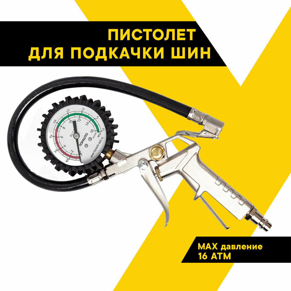 TOPAUTO Пистолет для накачивания шин грузовой ТОП авто 16 АТМ 14450