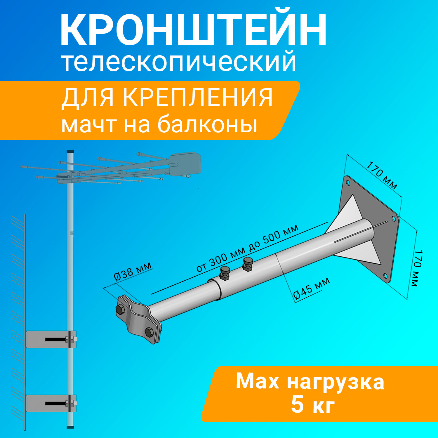 Кронштейн телескопический для крепления мачты антенны, вылет от стены 30-50 см информация: