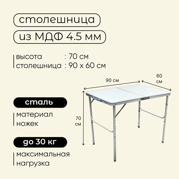 Набор Maclay, туристический, складной: стол, размер 90 х 60 х 70 см, 2 стула, цвет белый