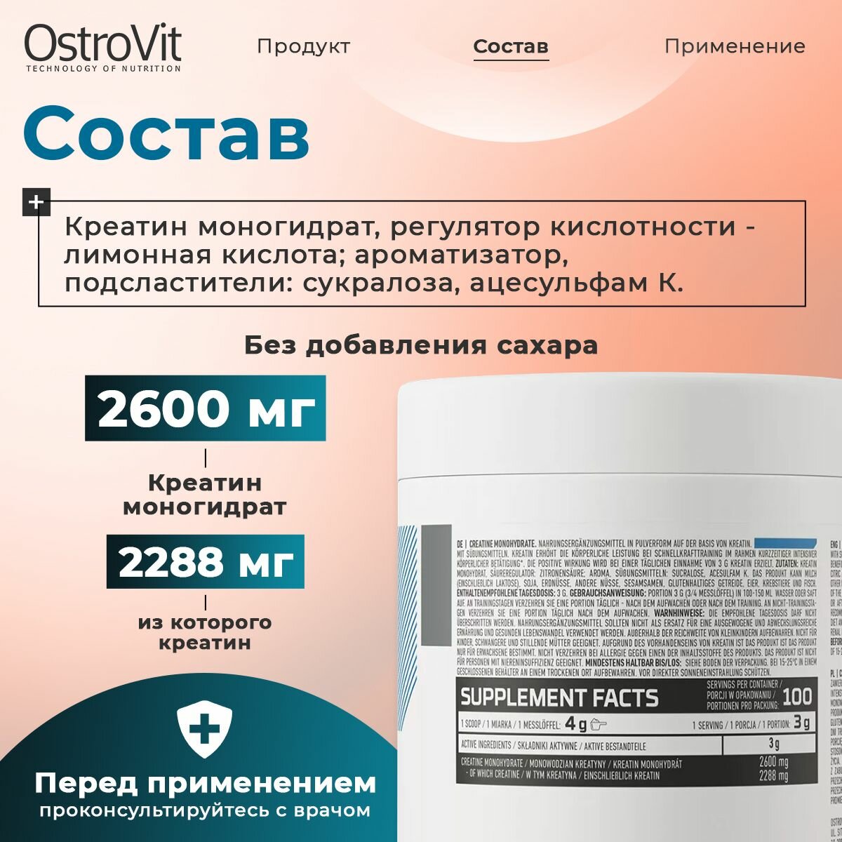 Ostrovit, Creatine Monohydrate, Креатин моногидрат со вкусом зелёного яблока, порошок 300г. / Спортивное питание, для набора мышечной массы, для похудения информация: