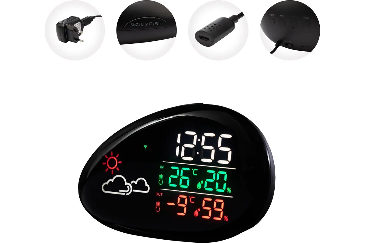 Метеостанция HALSA Wi-Fi с выносным датчиком и будильником