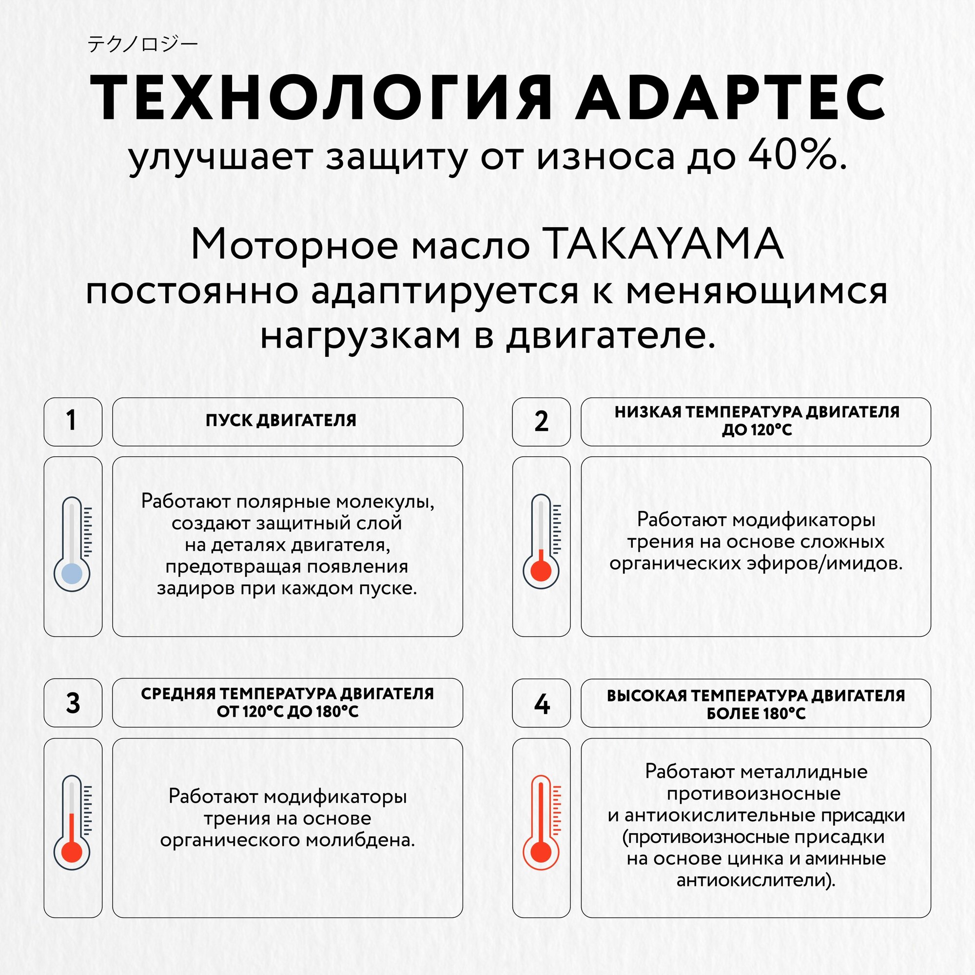Акция 4+1 Моторное масло TAKAYAMA ADAPTEC SAE 5W-30, ILSAC GF-5, API SN Синтетическое 4 л информация: