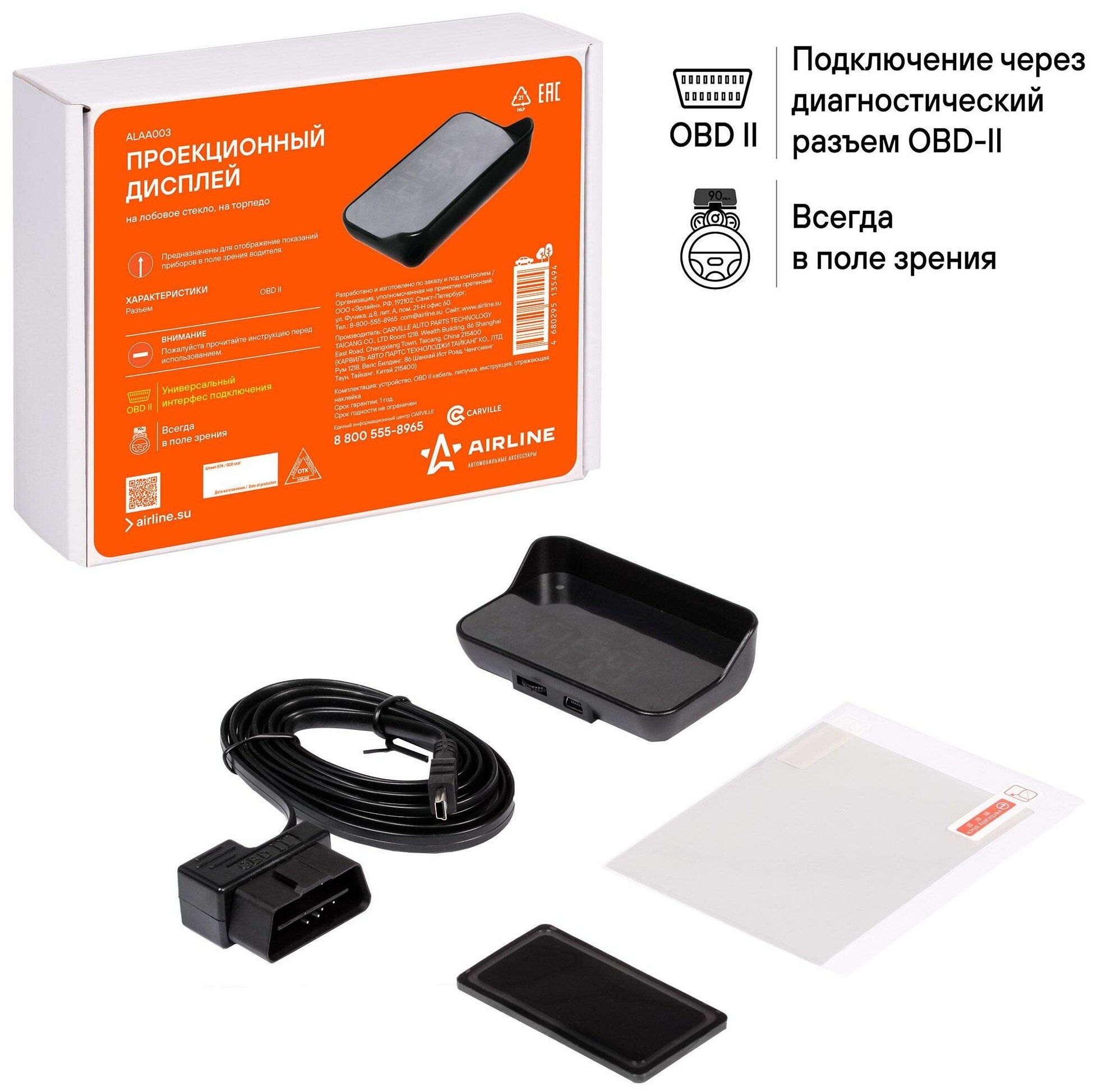 AIRLINE ALAA003 Дисплей проекционный HUD, проектор скорости (спидометр) на лобовое стекло (AIRLINE)
