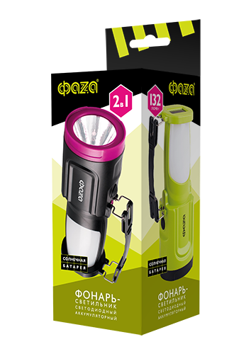 Фонарь ручной ФАZА AccuF8-L1W/L24-bk, солнечная панель, черный информация: