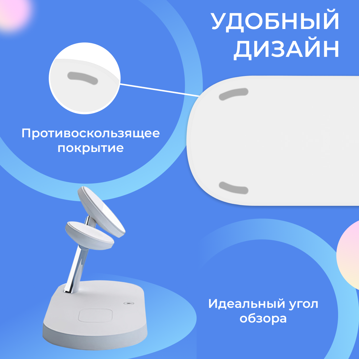 Беспроводная док станция 5 в 1 MagSafe 15W для Apple iPhone, Apple Watch и AirPods с подсветкой ночником/ Зарядка на Эпл Айфон, Эпл Вотч и Айрподс