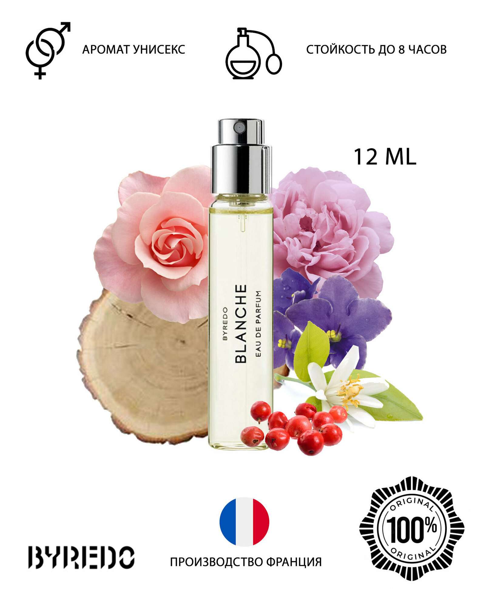 10 цен на парфюмерная вода BYREDO Blanche 12 мл, 15 г