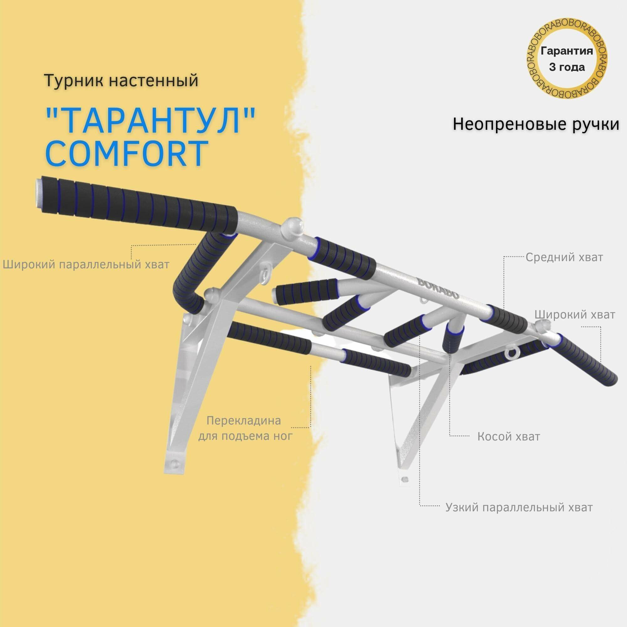 Турник настенный "Тарантул" COMFORT с неопреновыми ручками информация: