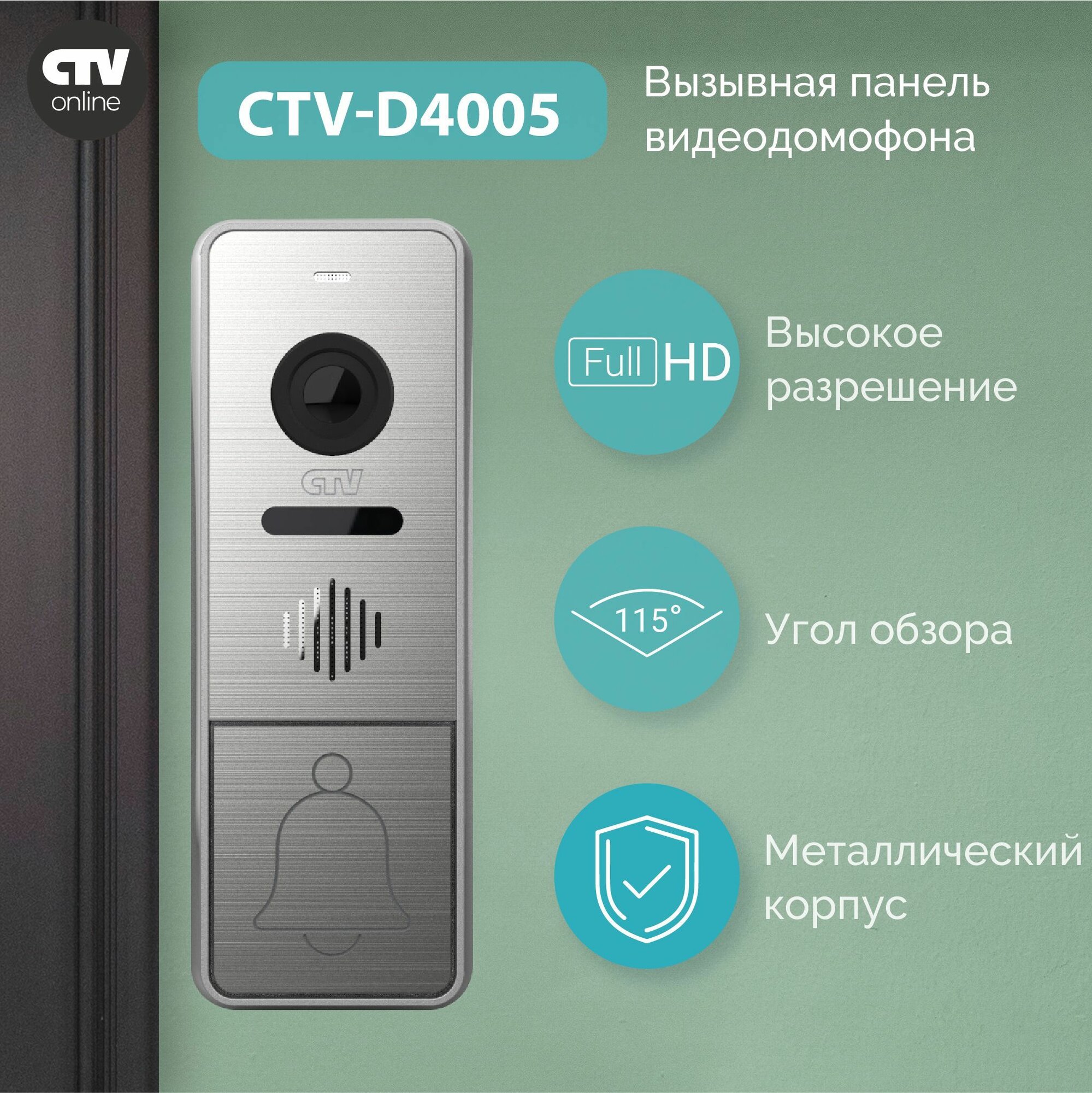 10 цен на Вызывная панель видеодомофона CTV-D4005 (Серебро), Видеокамера 2Mp FULL HD, обзор 115 градусов. ИК-подсветка. Антивандальный корпус, -30...+50С