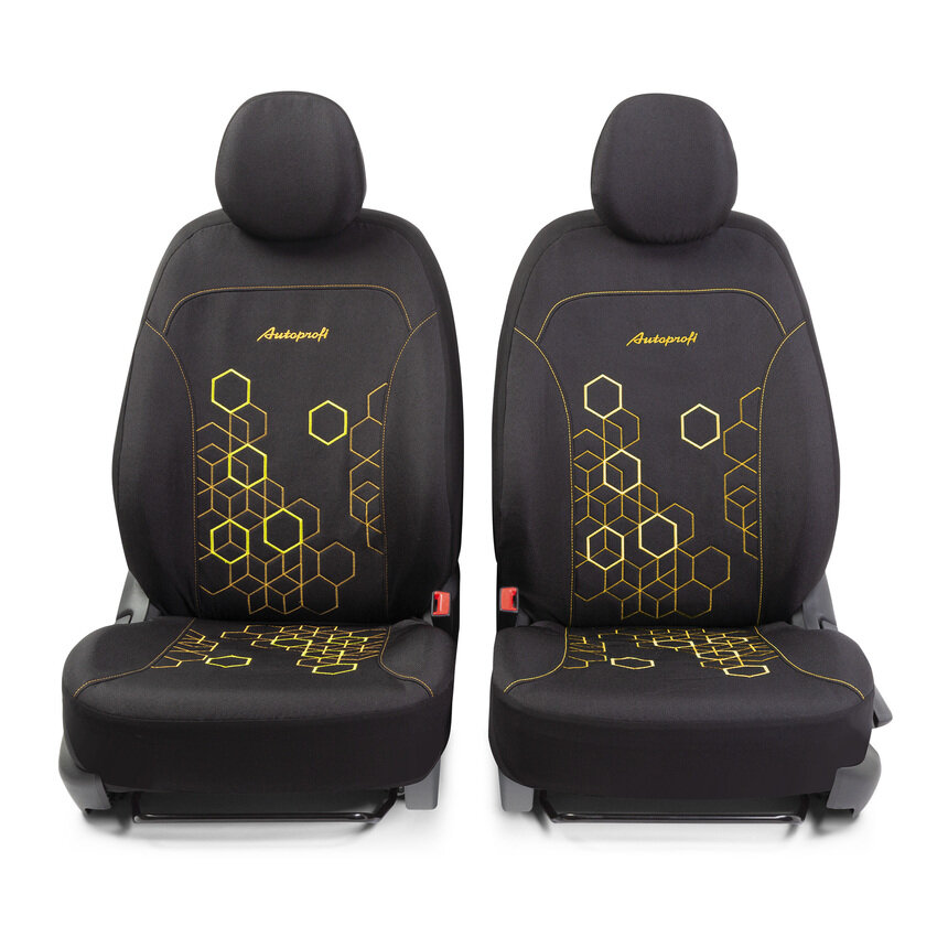 10 цен на Чехлы Autoprofi Hologram 11 пр. жаккард с фигурной вышивкой черно-желтые