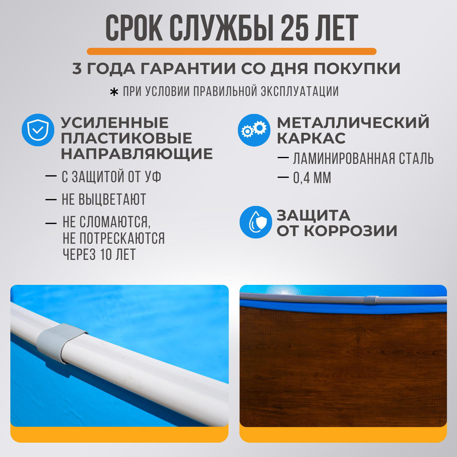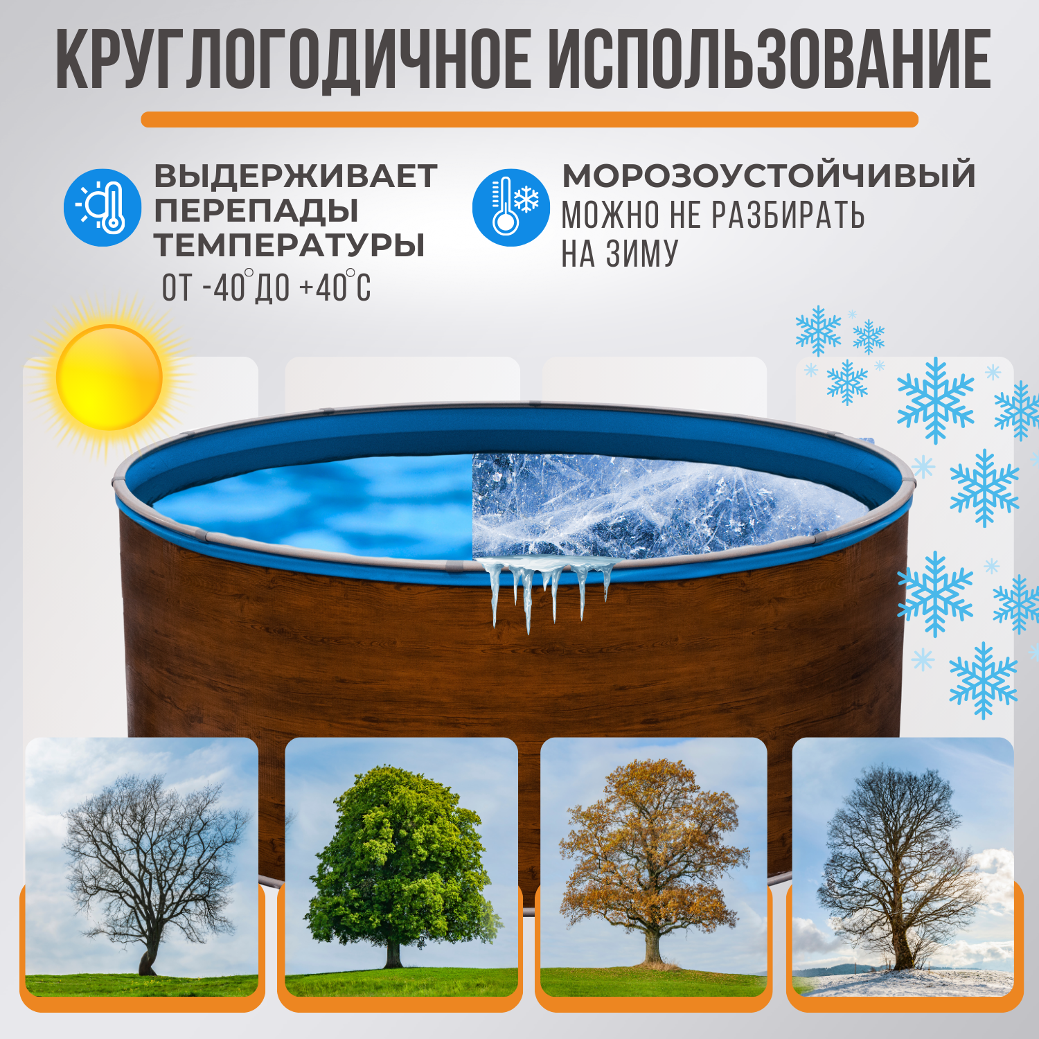 Отзывы на Бассейн каркасный LARIMAR: морозоустойчивый, круглый. 244 х 125 см. Цвет дерево + Чашковый пакет толщиной 0,4 мм.
