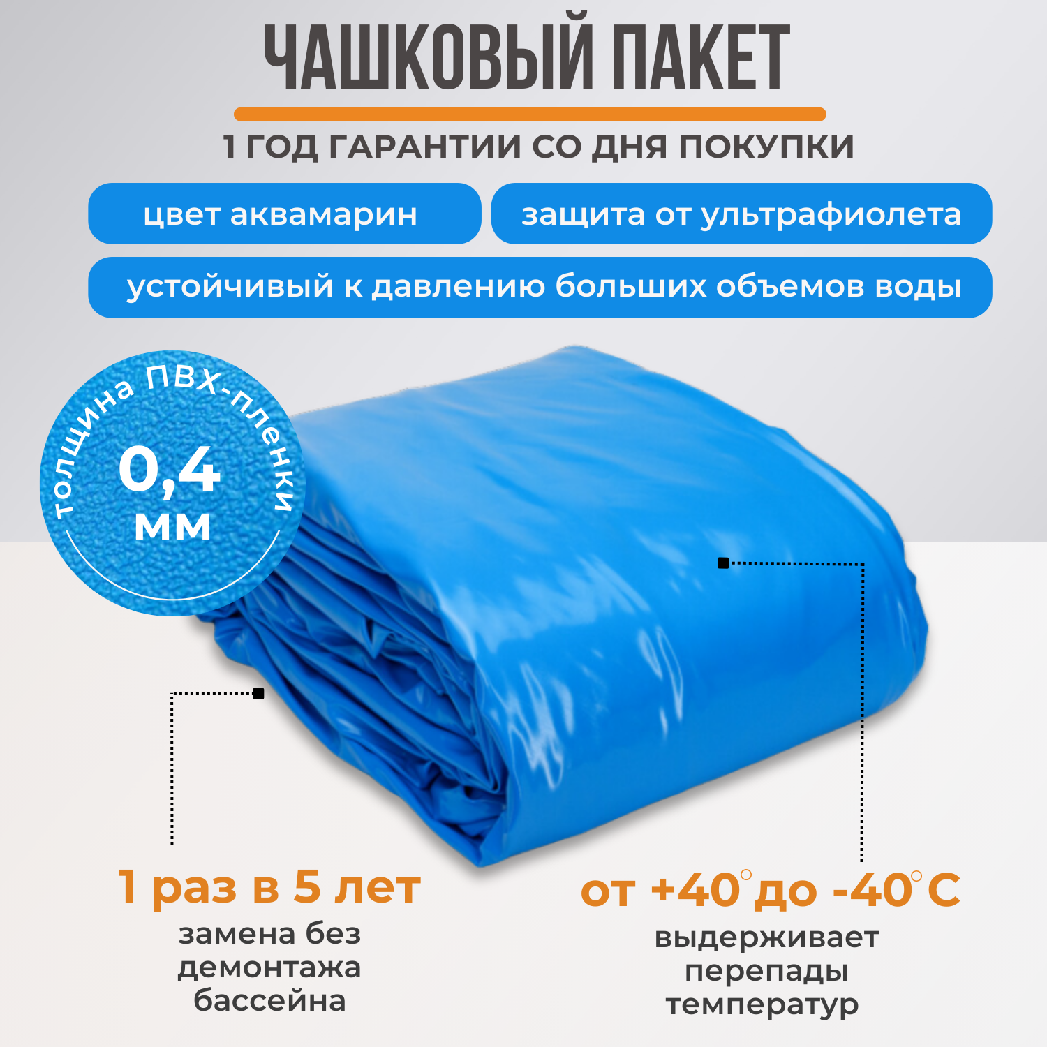 Бассейн каркасный LARIMAR: морозоустойчивый, круглый. 488 х 125 см. Цвет платина + Чашковый пакет толщиной 0,4 мм. 178 607 ₽