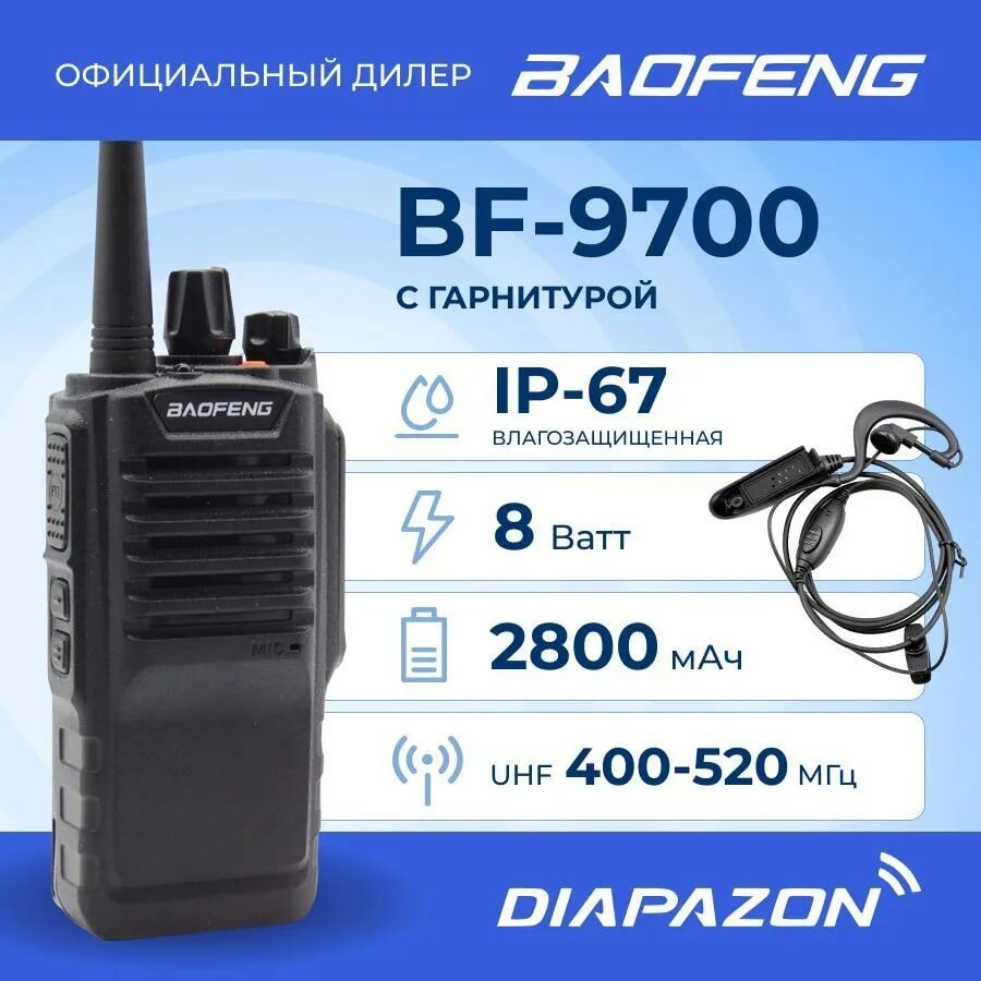 Рация BAOFENG BF-9700 влагозащищенная IP-67 с гарнитурой в комплекте информация: